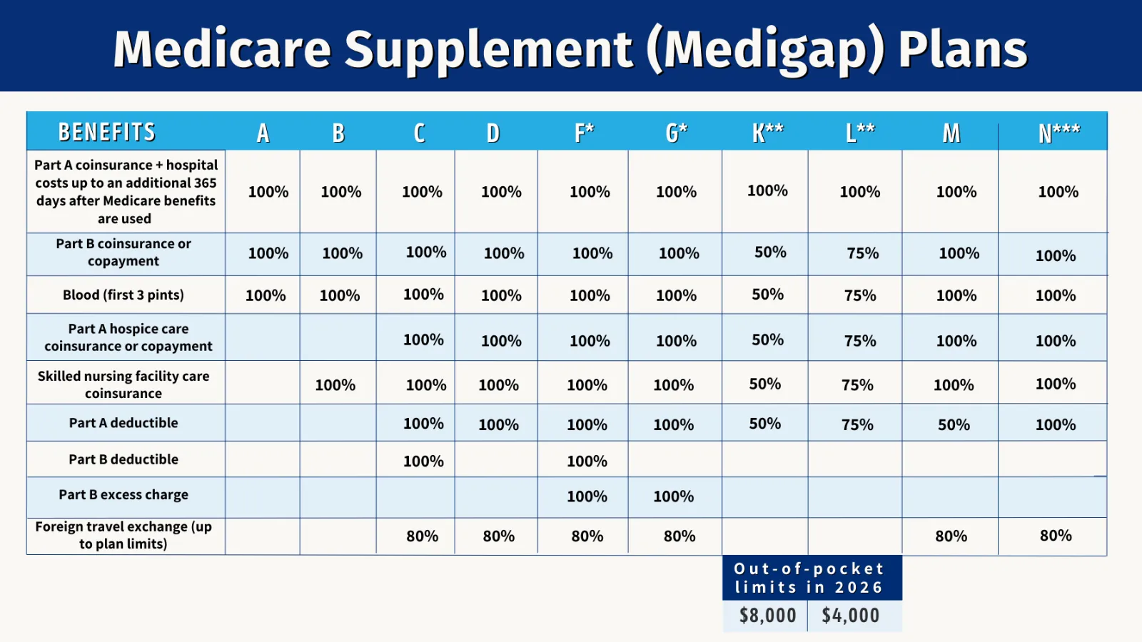 ** For Plans K and L, after you meet your out-of-pocket yearly limit and your yearly Part B deductible ($283 in 2026), the